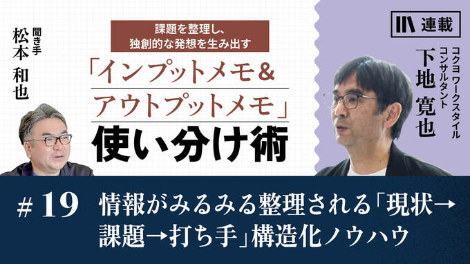 ノートに気づきやアイデアをたくさん書き出したけど、これをどうまとめて、人に伝わる企画に仕上げていくのか、多くの人が悩むテーマです。企画に仕上げるコツは、たくさん書き出された情報を、「現状→課題→打ち手」という構造化ノウハウを使って整理していくこと。下地さんが実演します。