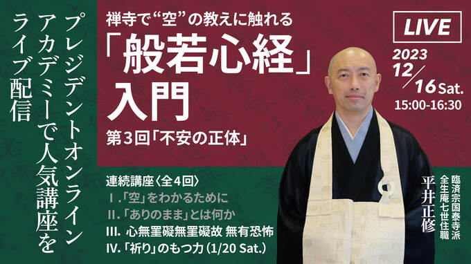 15:20〜 講義 心無罣礙無罣礙故 無有恐怖──「不安の正体」