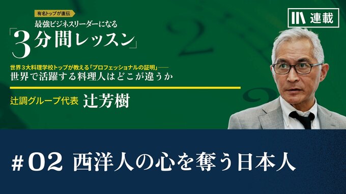 第2話 2023/5/15 月曜朝のエネルギー、全4回のレター 西洋人の心を奪う日本人 心のアップグレード 3分間レッスン マネジメント リーダーシップ 前回は、現代のプロフェッショナルの条件を3つ挙げたうえで、アメリカ人シェフを紹介してもらいました。今回は、西洋の料理人が憧れるという日本人の登場です。本物のプロフェッショナルの共通点にも触れます――。(2023年5月15日レター) 辻 芳樹 辻調グループ代表 1964年、大阪府生まれ。1993年に辻調理師専門学校校長、辻調グループ代表に就任。2000年に、九州・沖縄サミット首脳晩餐会料理を監修、19年にもG20大阪サミットの首脳夕食会でエグゼクティヴプロデューサーを務める。21年、内閣府「クールジャパン官民連携プラットフォーム」共同会長に就任。24年春、学校法人辻調理学館「辻調理専門学校 東京」を、東京都小金井市に開校予定。隣接する国立大学法人東京学芸大学とも22年に連携協定を締結。「食と環境」をテーマに教育研究を深化させ、両校が培ってきた「知」を集結させ、次代を見据えた学びを提供する計画。(2023年5月配信時)