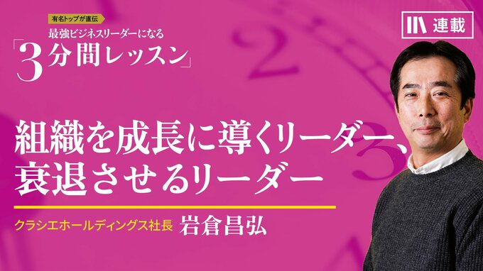「葛根湯」や「いち髪」「甘栗むいちゃいました」「ねるねるねるね」など、漢方薬からシャンプー、お菓子にいたるまでホームプロダクト商品を扱うクラシエ。前身の旧カネボウ時代を経験した社長の岩倉昌弘氏は、激動に揺れる組織での体験や感じたことを反面教師に、クラシエの経営を行っています。日々目まぐるしく状況が変わる社会のなかで、リーダーはどう在るべきか。岩倉社長が教える「組織を成長に導くリーダー」と「衰退させるリーダー」の違いとはなにか。