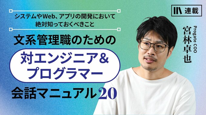 システムやWeb、アプリの開発プロジェクトが発足し、あなたがプロジェクトリーダーに――。これまで全く異なる職種を担当してきたのに、突然エンジニアの管理を任されるとしたら、戸惑いを感じるでしょう。しかし、エンジニアやプログラマーが使う言葉を理解し、彼らの思考を捉えることができれば、開発チームとあなたが思い描いた仕事を達成できます。文系管理職でも開発チームをマネジメントしていける最も効果的な方法を、全20回の連載でお伝えします。