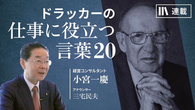 ドラッカーは「知の巨人」「マネジメントの発明者」と呼ばれ、20世紀が生んだ最高峰の経営学者・思想家。ビジネスや人生を成功させる秘訣について、多くの言葉を残しています。しかし、その著作は数十冊に及び、内容は体系的で難しく、一冊あたりの文章量も膨大。そこで本連載は、ドラッカーが残した数々の名言から20個を小宮さんが厳選し、名アナウンサーの三宅民夫さんが聞き手になって、わかりやすく解説してもらいます。三宅さんの心に染みる「20の言葉」の朗読とともに、ドラッカーの深い言葉の意味を学んでいきましょう。